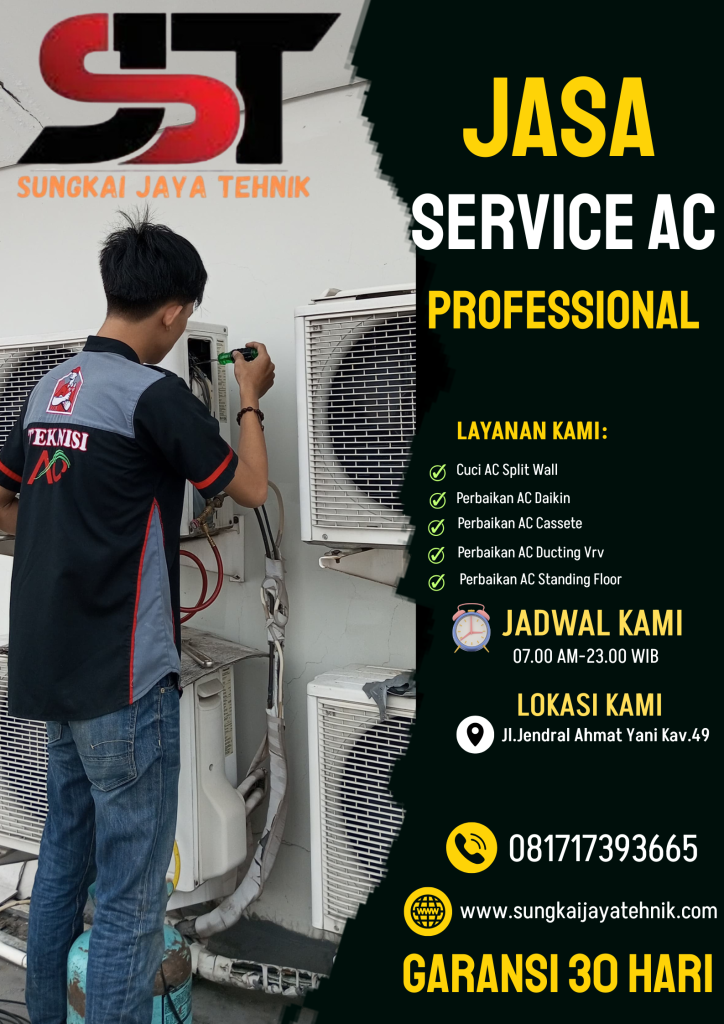 Jangan Khawatir! Percayakan pada SUNGKAI JAYA TEHNIK kami. Dapatkan hasil maksimal, AC berfungsi baik, biaya terjangkau, dan 100% bergaransi. Hubungi kami sekarang untuk informasi lebih lanjut dan dapatkan solusi tepat untuk AC Anda.